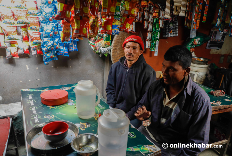 बस्तीबीचमा एउटा ‘होटेल’ को साइबोर्ड देखियो । टिनको छानामाथि अड्याइएको त्यही साइनबोर्डमुनिबाट निहुरिँदै निस्के, रामबहादुर श्रेष्ठ (५०) । उनी पनि सुकुम्बासी होइनन् ।