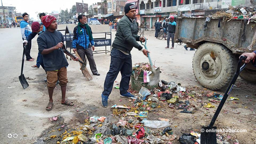 २३ पुस, वीरगञ्ज । वीरगञ्जका सडकमा जताततै फोहोर थुप्रिएपछि अभियन्ता, प्रहरी र सर्वसाधारणले आफैैं उठाउन थालेका छन् । कर्मचारी आन्दोलनका कारण सडकमा जथाभावी फोहोर थुप्रिएपछि व्यवस्थिति वीरगञ्ज अभियानका अभियन्ता, प्रहरी र सर्वसाधारणले फोहोर उठाएका हुन् ।