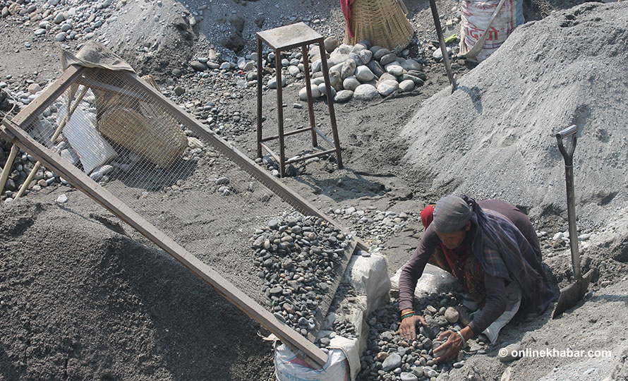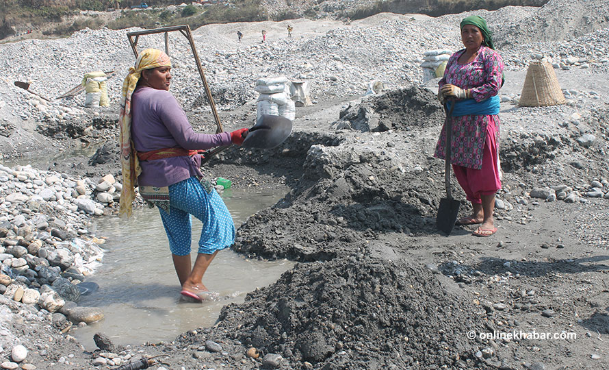 बिहानैदेखि साँझ अबेलासम्म त्यसरी मरिमेटेर काम काम गरे पनि ज्याला असाध्यै कम छ, मिनाको । पुरुष र उनले गर्ने कामको प्रकृति पनि फरक छ । ‘केटारुले भारी बोक्छन्, हामीले यी यसरी बालुवा मात्र चाल्ने हो,’ उनी भन्छिन् ।