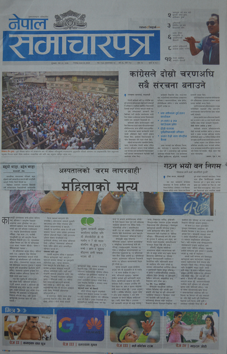 हेर्नुहोस् आजका पत्रपत्रिकाका फ्रन्टपेज